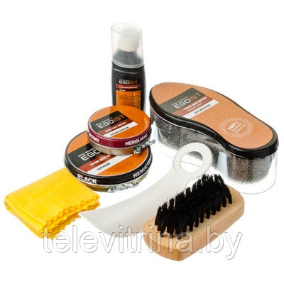 Набор для ухода за обувью удобно упакован в прозрачную сумочку на молнии, имеется ручка.